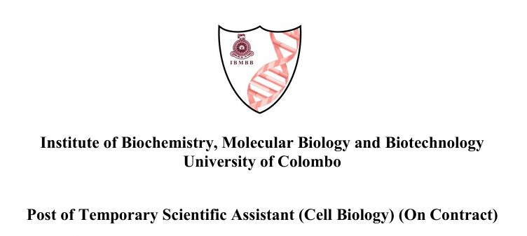INSTITUTE OF BIOCHEMISTRY, MOLECULAR BIOLOGY AND BIOTECHNOLOGY (IBMBB), UNIVERSITY OF COLOMBO Post of Temporary Scientific Assistant (Cell Biology) (On Contract) The IBMBB will entertain…